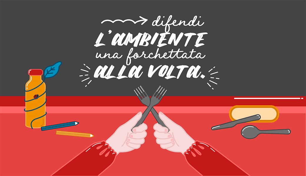 In collaborazione con Guzzini abbiamo realizzato un set di posate in acciaio made in Italy – composto da coltello, cucchiaio e forchetta – da mettere a disposizione in scuole e aziende per sostituire le posate in plastica monouso, incentivando il riuso delle posate in acciaio, riducendo in questo modo il nostro impatto sul Pianeta.