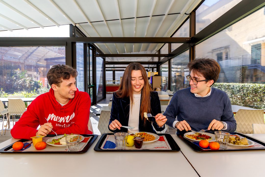Il servizio di ristorazione si sviluppa in tre sedi dell’ateneo: nella mensa centrale, situata all’interno di un antico monastero del 1200, abbiamo un ristorante self-service al primo piano e un dehor esterno attrezzato, luoghi di incontro e di condivisione di momenti di convivialità per gli studenti.